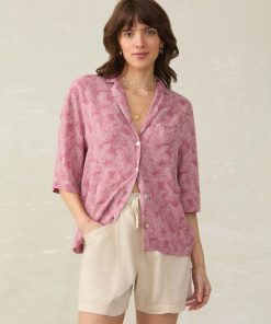 Faherty Women’s Cabana Short-sleeve Shirt – Dusty Rose Banana Leaf | Dusty Rose Banana Leaf