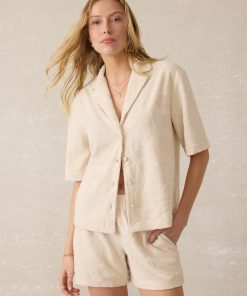 Faherty Women’s Cabana Towel Terry Camp Shirt – Marble Poolside Foliage | Marble Poolside Foliage