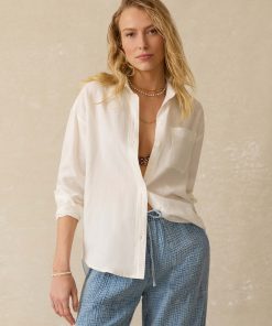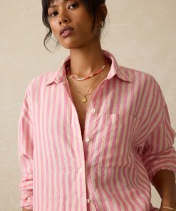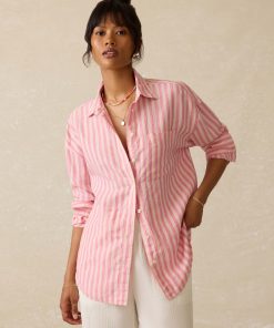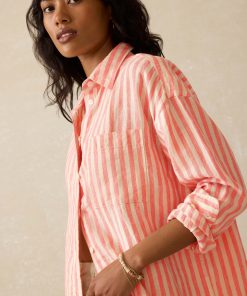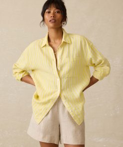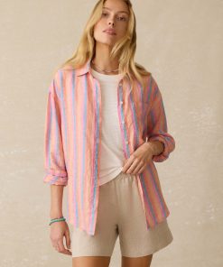 Faherty Women’s Laguna Linen Relaxed Shirt – Golden Kiwi Lucy Stripe | Golden Kiwi Lucy Stripe