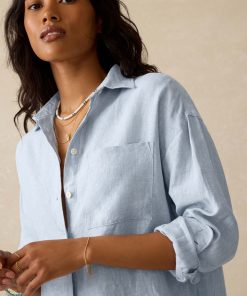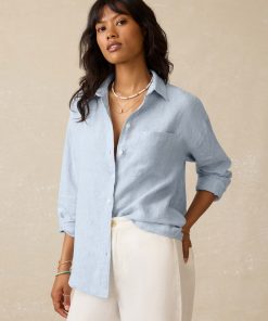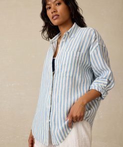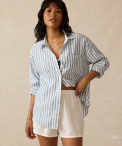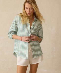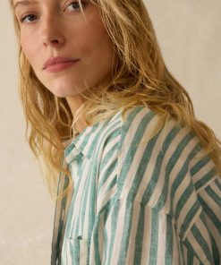 Faherty Women’s Laguna Linen Relaxed Shirt – Deep Jungle Lucy Stripe | Deep Jungle Lucy Stripe