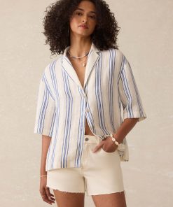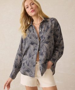 Faherty Women’s Sandwashed Silk Short Sleeve Pajama Set – Navy Tropic Trees | Navy Tropic Trees