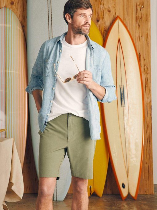 You know them, you love them, our All Day™ Shorts look perfectly tailored with a flat front style and have the water repellent technical performance of swimwear for increased movement and breathability. Each pair is crafted in our premium eco-friendly fabric, made primarily of recycled plastic bottles with a touch of cotton for a soft, natural feel. Finished with an inner drawstring, mesh-lined pockets, and a zipper fly, these shorts are expertly crafted for all-day functionality (hence its name). Available in multiple inseam lengths.