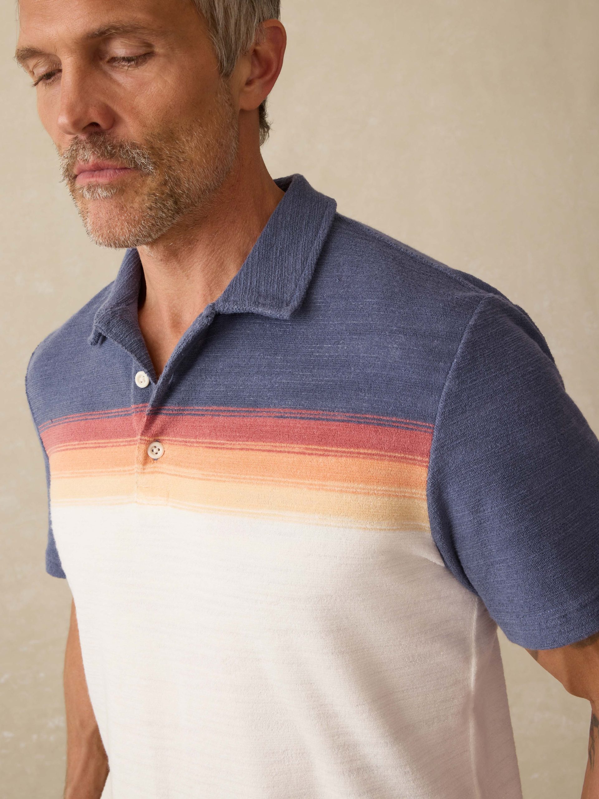 Meet our softer-than-soft terry polo—like your favorite beach towel, only sharper. Breezy, absorbent, and endlessly comfortable, it’s the perfect throw-on after a dip or for those crisp mornings with coffee in hand.