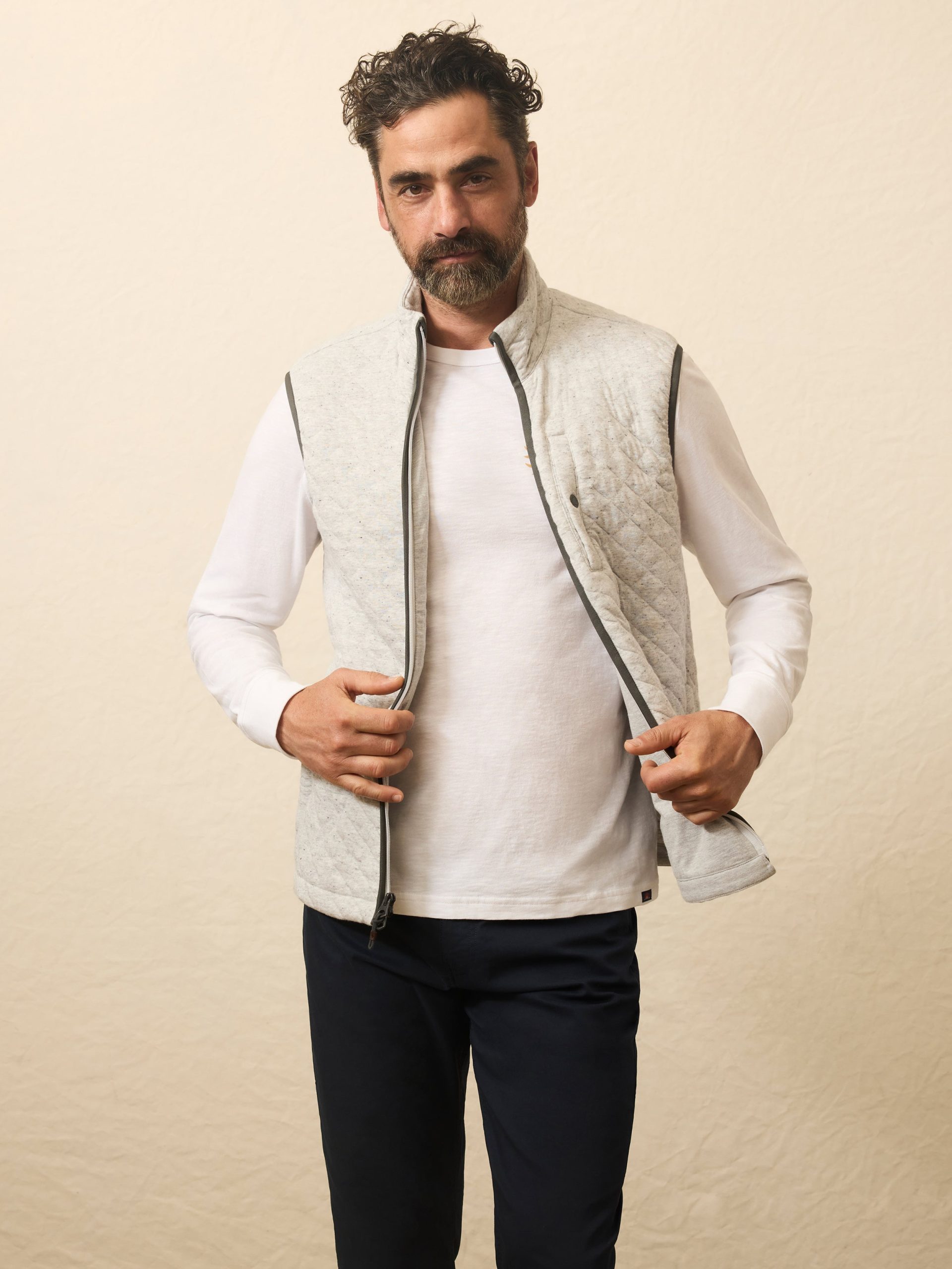 Quilted with three layers for structure, texture and warmth, this midweight fleece vest is endlessly versatile as a layering piece. Sleek and sporty, we keep this essential by the front door for looking put together when it’s go-time.