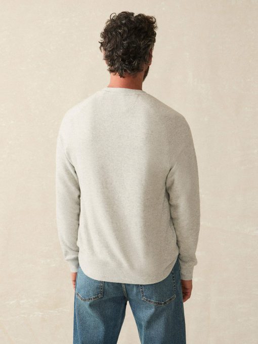 - Detail: Crewneck, pullover style. Raglan sleeves. Banded cuffs and hem. Woven Sun & Waves label at wearer’s left hem.
