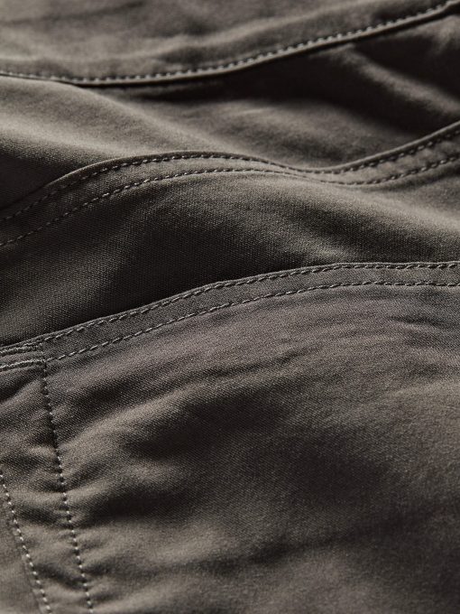 - Material: 63% Organic Cotton, 33% COOLMAX® EcoMade Polyester, 4% Elastane; Elastic Waistband; Antique Silver Centerfront & Wearer’s Right Back Pocket Zippers; Sprayed Rubber Shank