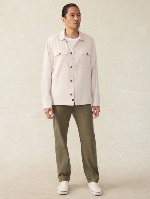 This shirt jacket is your new go-to as the temps climb. Crafted from a breathable linen blend with just the right amount of stretch, it’s lightweight, comfortable, and built for ease of movement. Perfect for summer days and warm evenings, it pairs seamlessly with the Movement Linen 5-Pocket Pant for a sharp, polished look that’s ready for anything from casual outings to wedding season.