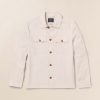 - Detail: Button front closure. Shirt style collar. Patch pockets at chest with button closure. Lower pockets hidden at side seams. Adjustable button cuffs. Locker loop at interior back neck seam.