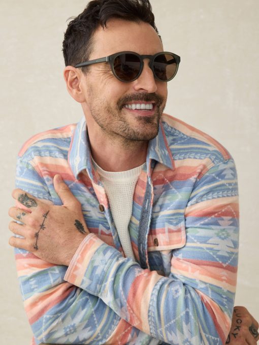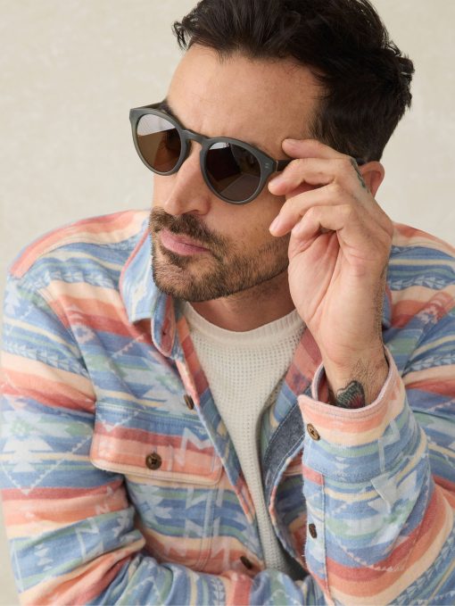 For the first time ever, we’ve developed our own sunglasses that combine performance with signature Faherty laid back vibes. This preppy round shape keeps it clean and effortless.