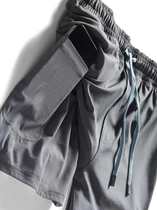 - Detail: Elasticated waistband. Lightweight drawcord with rubberized tips. Front slash pockets with hidden zipper at wearer’s left front side seam. Welt pocket at wearer’s right backside with hidden zip closure. Media pocket on wearer’s left side of compression liner. Gusset at crotch for improved comfort and mobility. Side seam vents. Woven Sun & Waves label at wearer’s left hem.