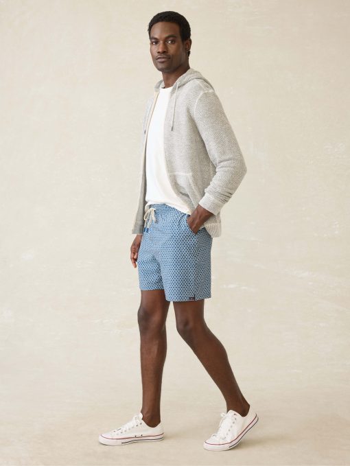 Introducing our most technical swim trunk yet for those gym-to beach days (and maybe even some lounging in between). Packed with utility, it’s got a breathable, compression liner for support during your most active moments and zippered accessory pockets to keep valuables close. The lightweight and quick-drying fabric has the perfect amount of stretch and offers UPF50+ so you can stay out and get after it. If you’re looking for a true activewear short with an iconic Faherty beach vibe, this is it.