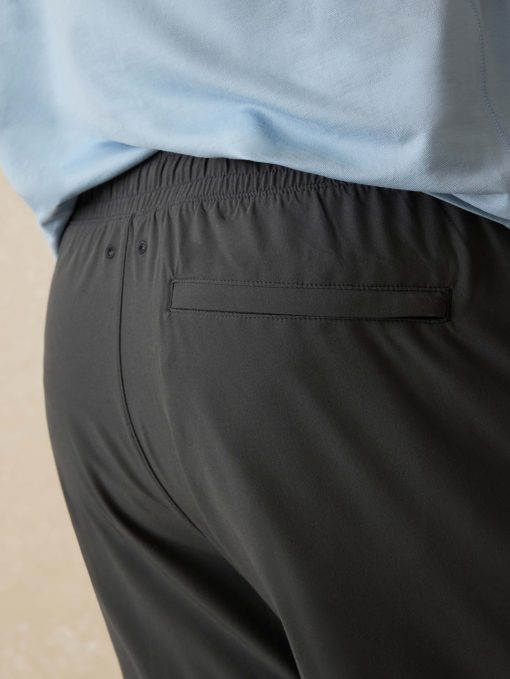 - Detail: Elasticated waistband. Lightweight drawcord with rubberized tips. Front slash pockets with hidden zipper at wearer’s left front side seam. Welt pocket at wearer’s right backside with hidden zip closure. Media pocket on wearer’s left side of compression liner. Gusset at crotch for improved comfort and mobility. Side seam vents. Woven Sun & Waves label at wearer’s left hem.