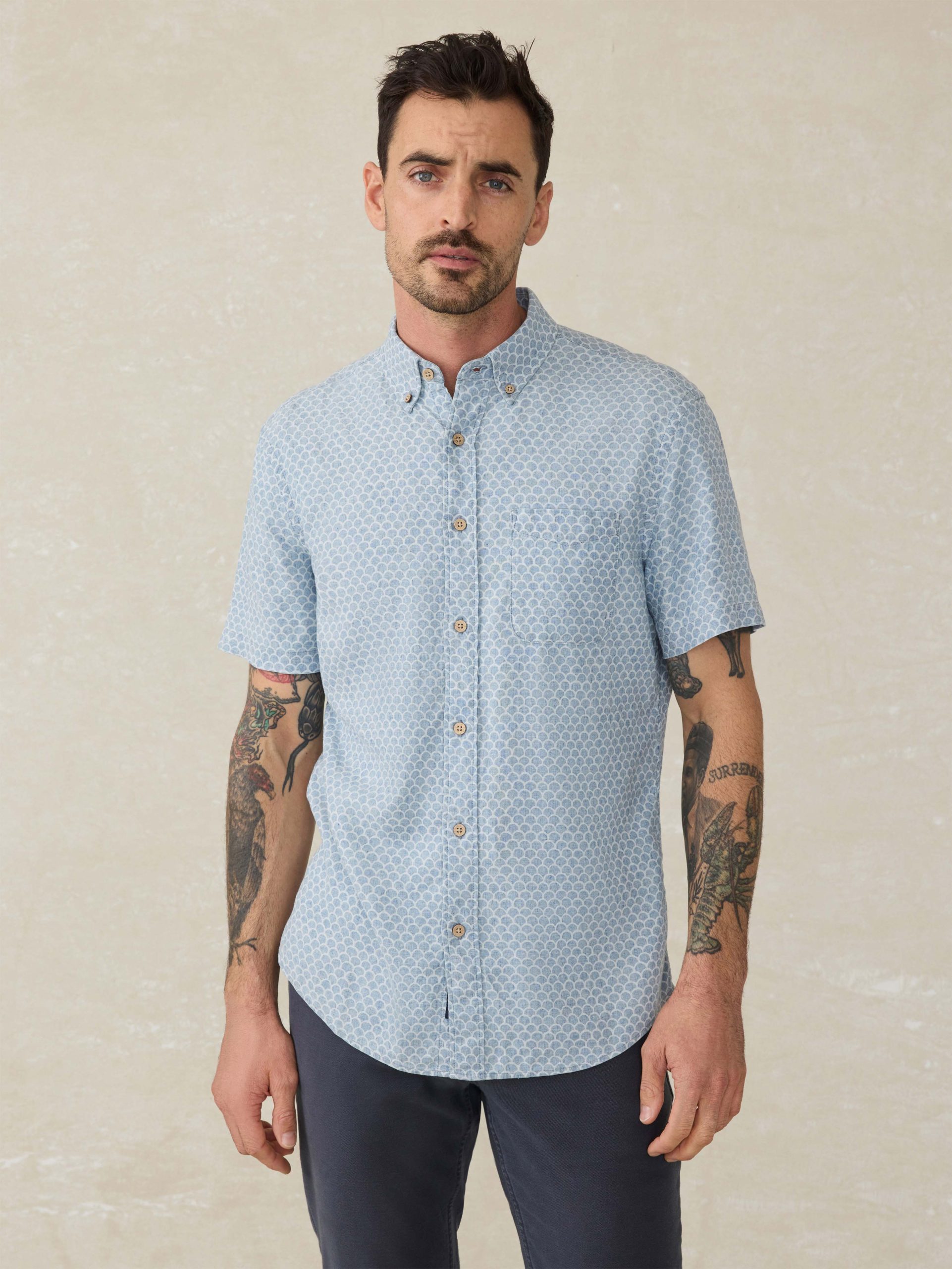 For sun-drenched days, we crafted this shirt from a super soft custom fabrication made primarily from linen. Lightweight with a bit of stretch, its unique hand feel gives our signature travel-inspired prints an added natural texture. Wear it whenever you’re seeking those effortless vacation vibes.