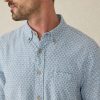 - Detail: Button-down collar. Button front. Patch pocket at wearer’s left chest. Double pleated back. Shirttail hem.