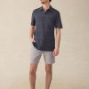 - Detail: Spread collar with built-in collar stays. Three-button placket. Short sleeves. Vented hem. Sun & Waves label at wearer’s left hem.