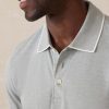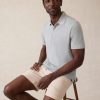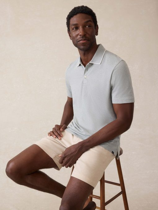 - Detail: Spread collar with built-in collar stays. Three-button placket. Short sleeves. Vented hem. Locker loop and half-moon at interior back neck. Sun & Waves label at wearer’s left hem.Flat knit collar with contrast tipping along edge. Three-button placket. Short sleeves. Vented hem. Locker loop and half-moon at interior back neck. Sun & Waves label at wearer’s left hem.