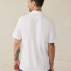 - Detail: Spread collar with built-in collar stays. Three-button placket. Short sleeves. Vented hem. Sun & Waves label at wearer’s left hem.
