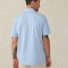 - Detail: Spread collar with built-in collar stays. Three-button placket. Short sleeves. Vented hem. Sun & Waves label at wearer’s left hem.