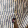 - Detail: Button front. Patch pocket at wearer’s left chest. Double pleated back. Shirttail hem.