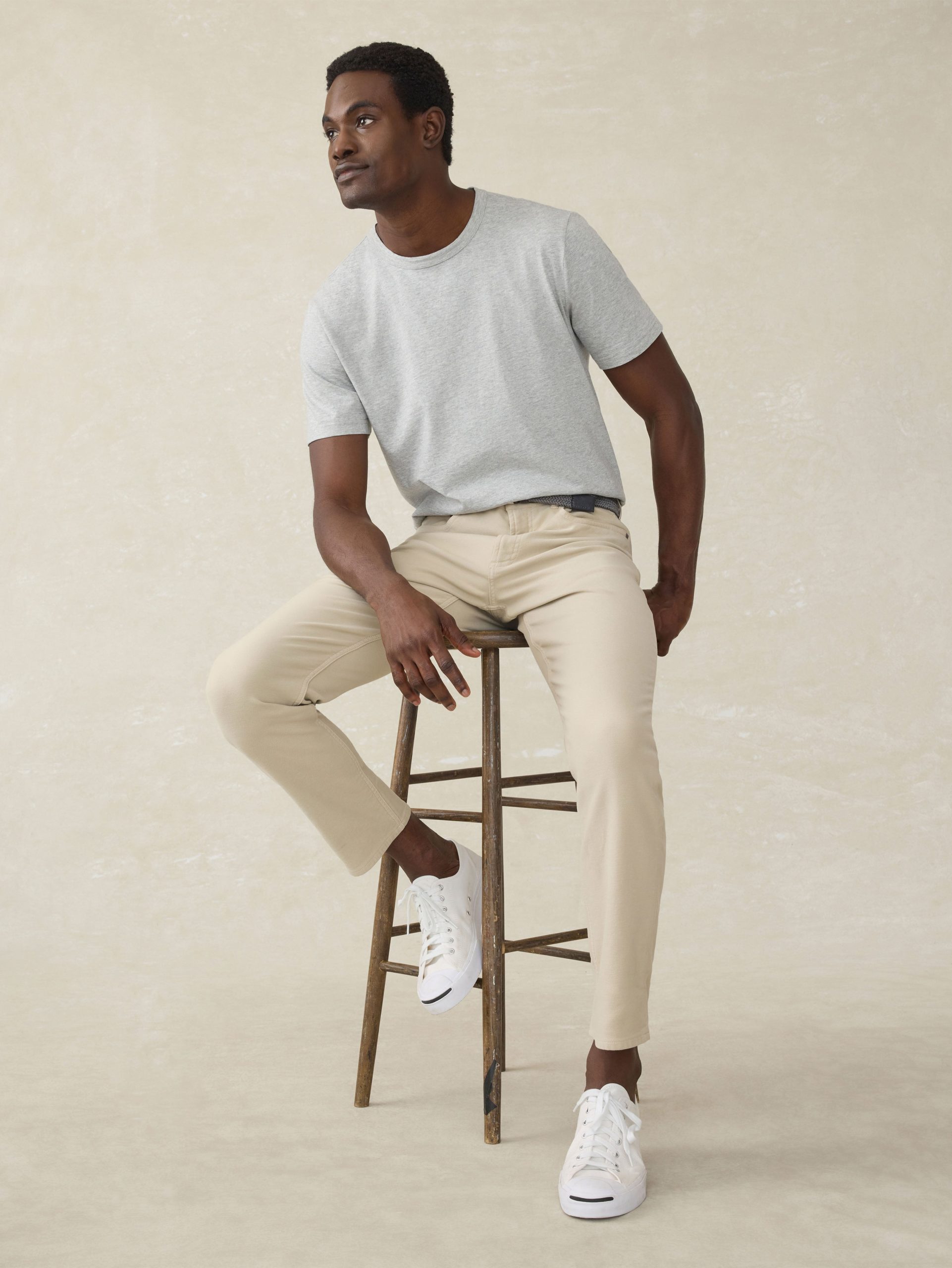 - Fit: A relaxed, straight leg. Sits just below the natural waist; These bestselling pants have a secret weapon – a proprietary stretch fabric dreamed up by Mike, our Co-founder and Chief Creative Officer. We recommend ordering your true size. Like new denim, they might feel a bit snug right out of the box but trust the process. Your natural movements will make them relax and conform to your unique shape.