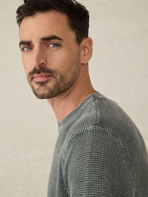Designed as an easy to wear, transitional sweater., this will be your go-to year-round crew. Our cotton yarn is super soft but not overly warm and knit in an airy, waffle stitch giving the sweater dimension and texture. It’s then garment-dyed and washed for a lived in, vintage look and feel that’s casually cool for any occasion.