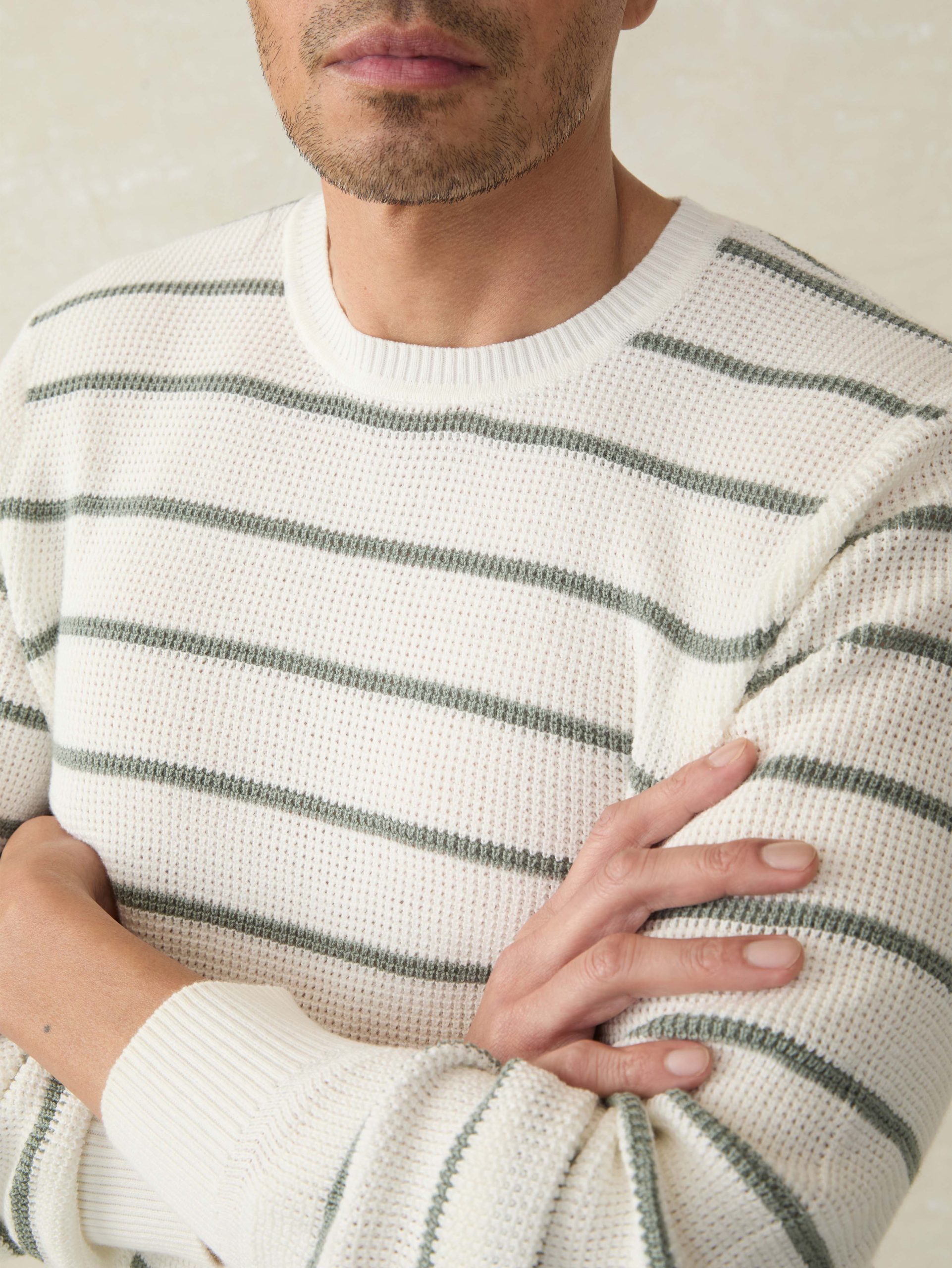 Designed as an easy to wear transitional sweater, this will be your go-to year-round crew. Our cotton yarn is super soft but not overly warm and knit in an airy, waffle stitch giving the sweater dimension and texture. It’s then garment-dyed and washed for a lived in, vintage look and feel that’s casually cool for any occasion.