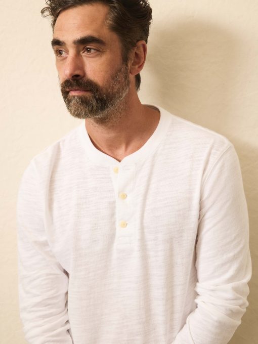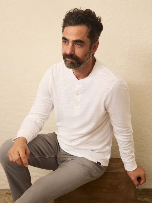 Faherty Men’s Sunwashed Slub Henley – White | White