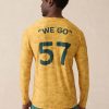 - Detail: Self fabric bound collar. Printed main label at back neck. Thumb loops at sleeve openings. Silicone Sun and Waves label at wearer’s left front hem. Soft microfilament thread for comfort next to skin.