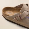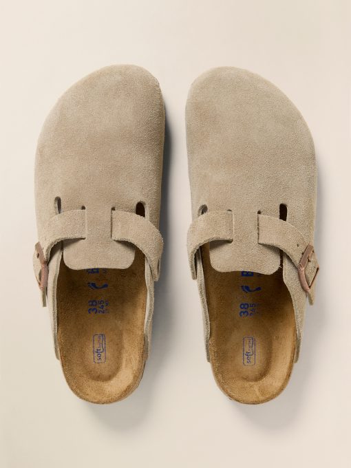 - Detail: Our most sought-after clog, the Boston lends a fashion-forward edge to any style. Velvety suede gives the laid-back look classic, every season appeal. Featuring an additional foam layer for cushioning, the soft footbed offers extra comfort plus go-all-day support. Cushioned BIRKENSTOCK soft footbed creates custom support with wear Classic suede upper Suede footbed lining helps keep you comfortable EVA sole is flexible and lightweight Adjustable strap with metal pin buckle “Made in Germany” quality stamp on footbed