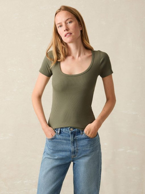 Crafted from our very own premium stretch pima cotton, this tee offers luxurious softness with an effortless fit. The ribbed knit adds subtle texture, transforming a classic wardrobe staple into a stylish piece that works for laid-back outings to more polished occasions all year-round. This is our go-to top for balancing out flowy, maxi skirts and wide-legged pants.