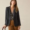 - Detail: Unlined blazer construction with exterior patch pockets.