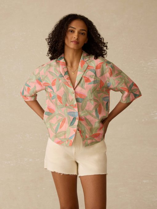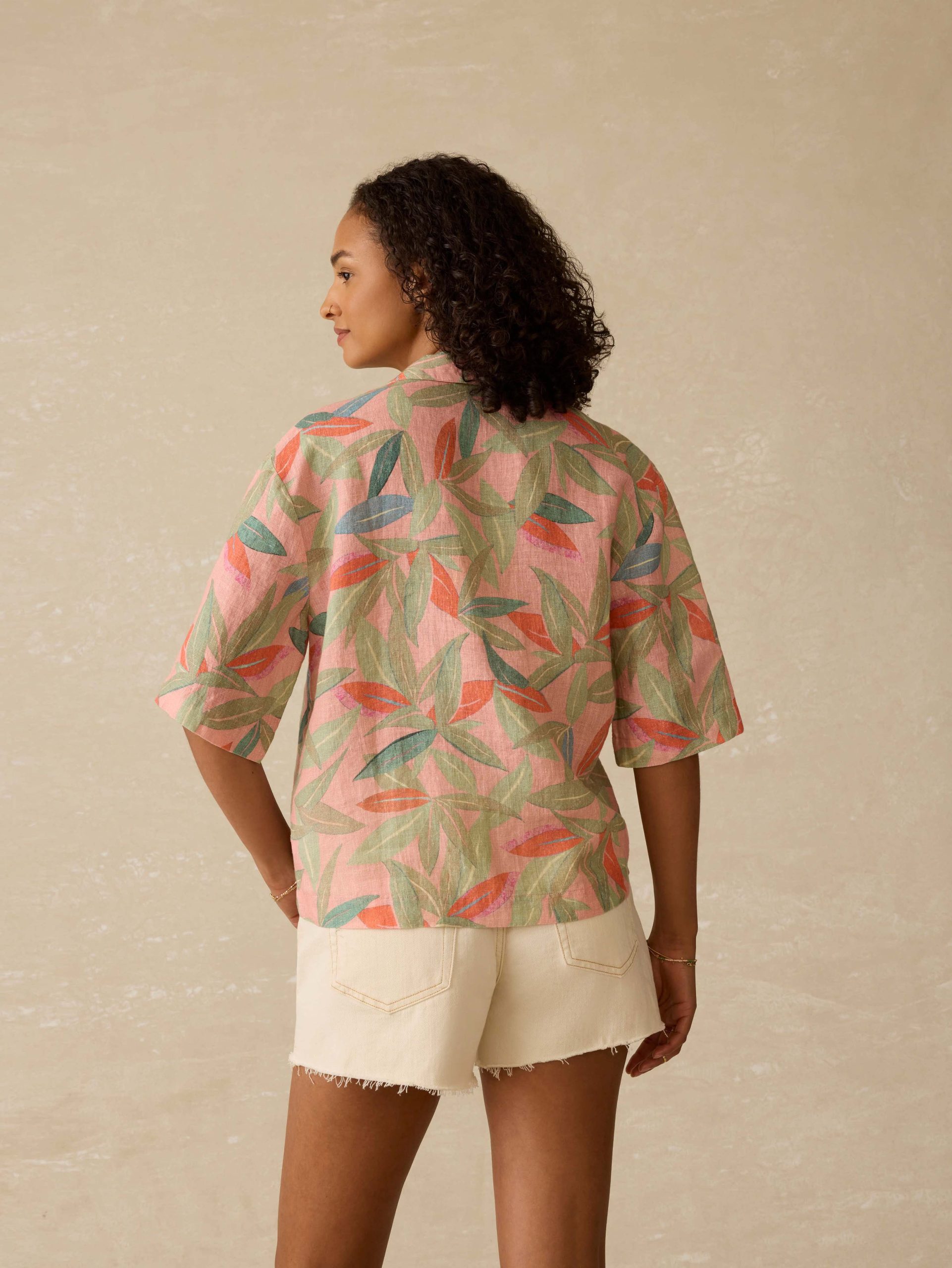 Vacation state of mind, bottled up in a shirt. This linen camp shirt brings the island vibes with a vibrant, lush tropical print and an easy, relaxed fit. Lightweight, breathable, and effortlessly cool, it’s your go-to for beach days, backyard drinks, or anytime you want to feel a little closer to the equator.