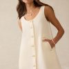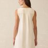 - Detail: Sleeveless linen denim dress. Button front with welt pockets