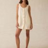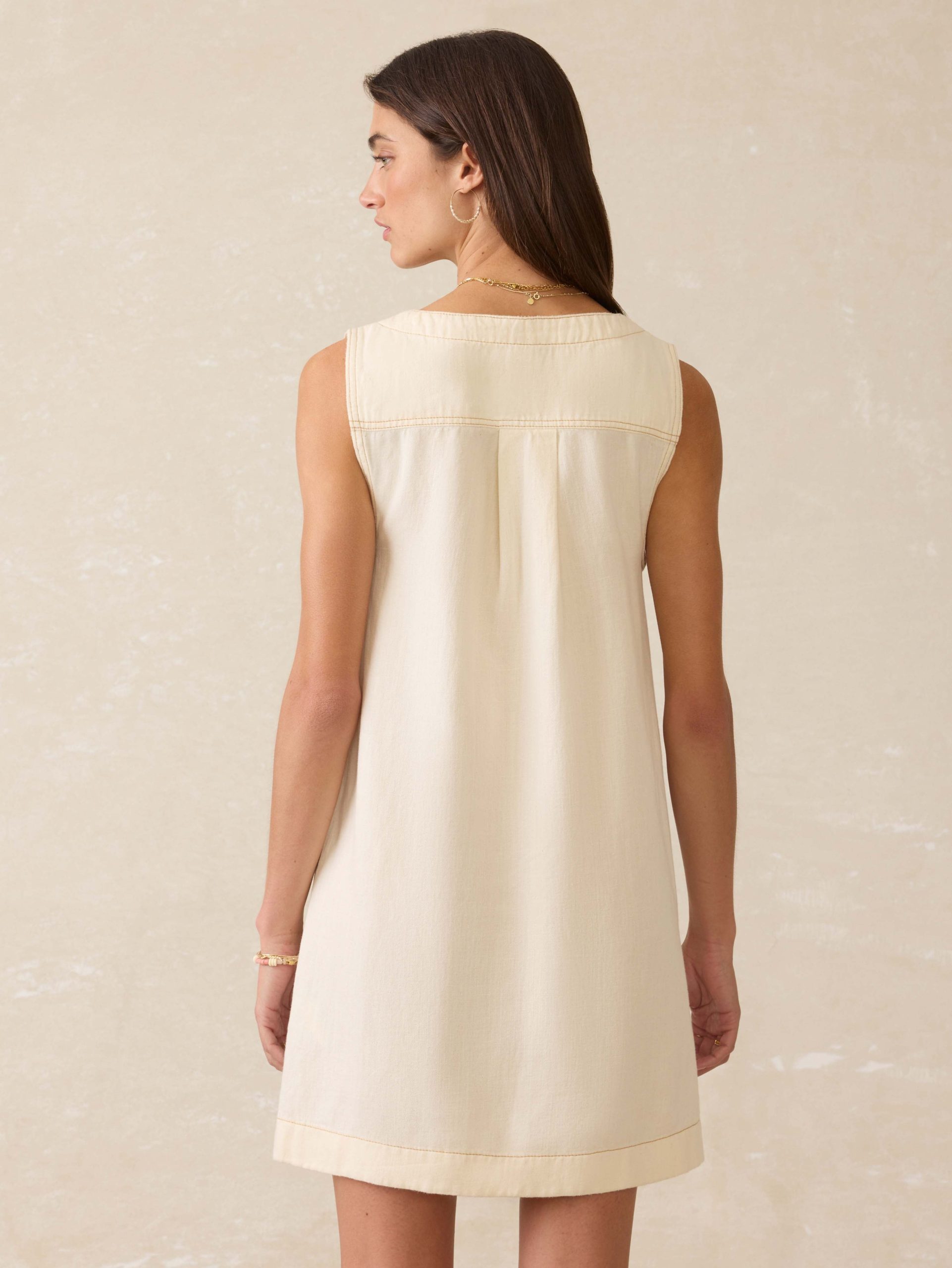 This linen denim mini dress combines easy structure with everyday utility. The button-front design and welt pockets nod to classic workwear, while the lightweight linen blend keeps things breezy. Polished enough to dress up, laid-back enough to wear on repeat.