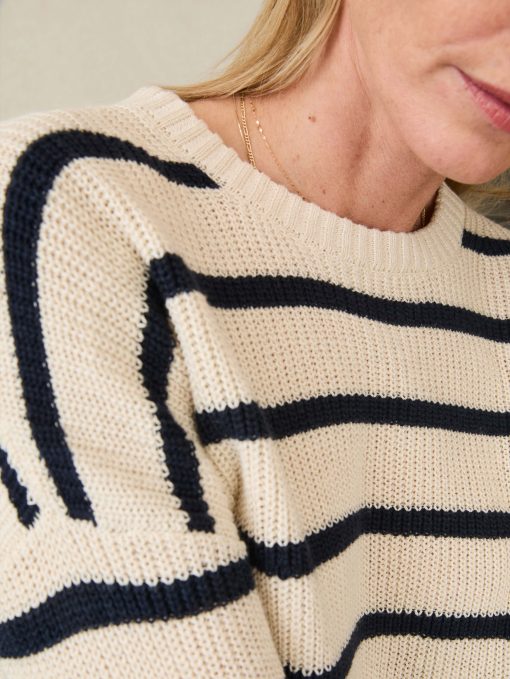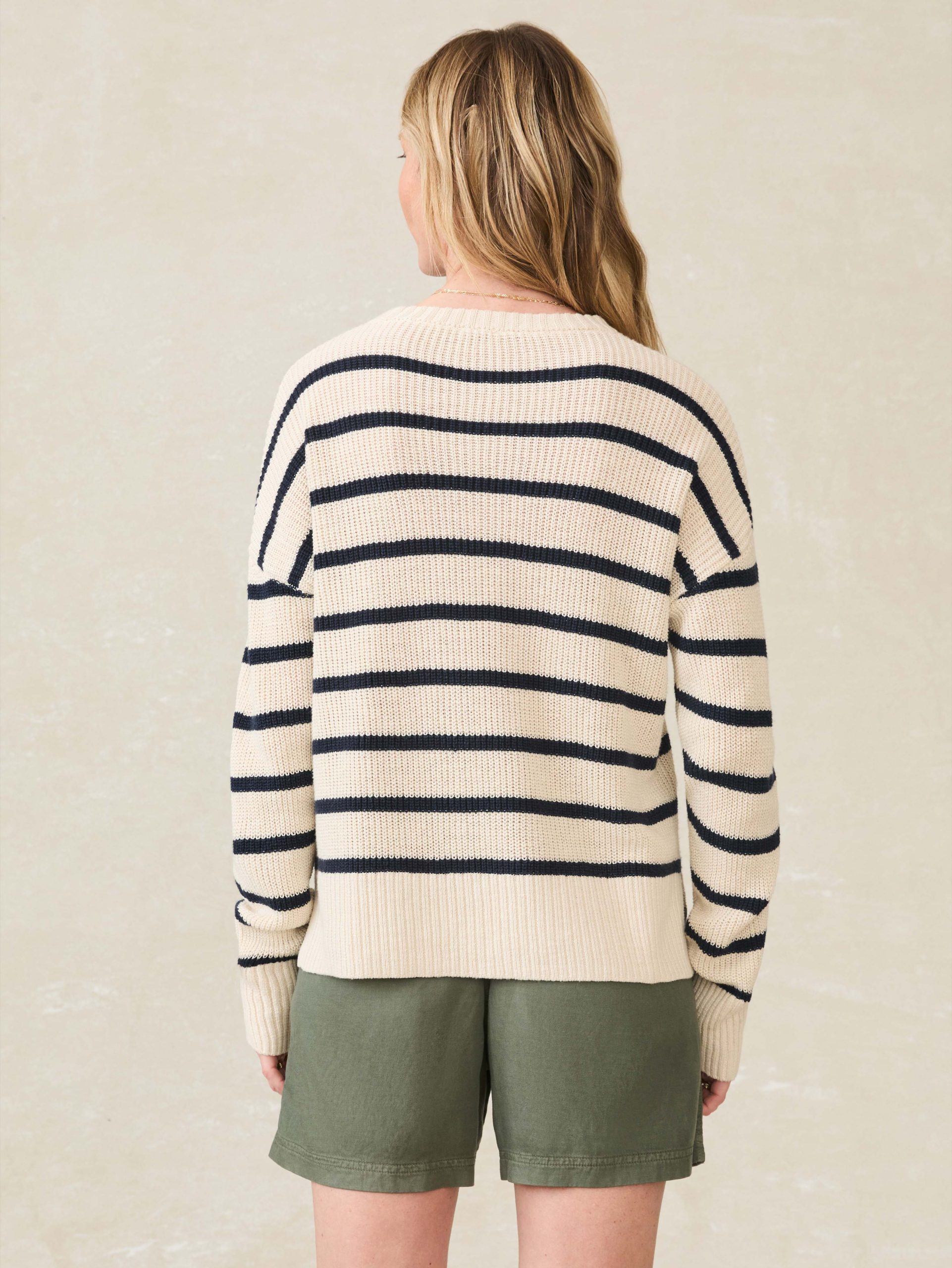 Warm enough for cool spring evenings but still light enough for sunny days, this charming crewneck is knit in an airy linen cotton blend that makes it the ideal in-between seasons sweater. The textural, open stitch drapes beautifully with a slouchy, slightly oversized fit. The definition of grace and ease, It’s destined to become a well-worn staple.