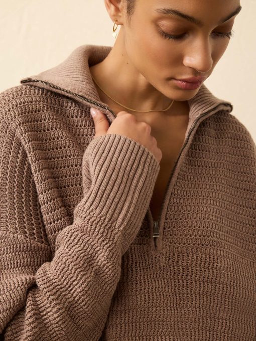 Made for those in-between days when the weather can’t make up its mind, this quarter-zip sweater is the perfect throw-on layer. Knit from a breathable linen-cotton blend with a textured open stitch, it’s lightweight yet warm enough for cooler evenings. The relaxed fit gives it a laid-back, sporty feel, while the zip neckline lets you adjust on the go.