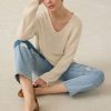 Warm enough for cool spring evenings but still light enough for sunny days, this striped polo is knit in an airy linen cotton blend that makes it the ideal layering piece. The textural, open stitch drapes beautifully with a slouchy, relaxed fit, making it our favorite no-fuss warm weather sweater.