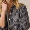 - Detail: Shell buttons at center front and cuffs. Shirttail hem.