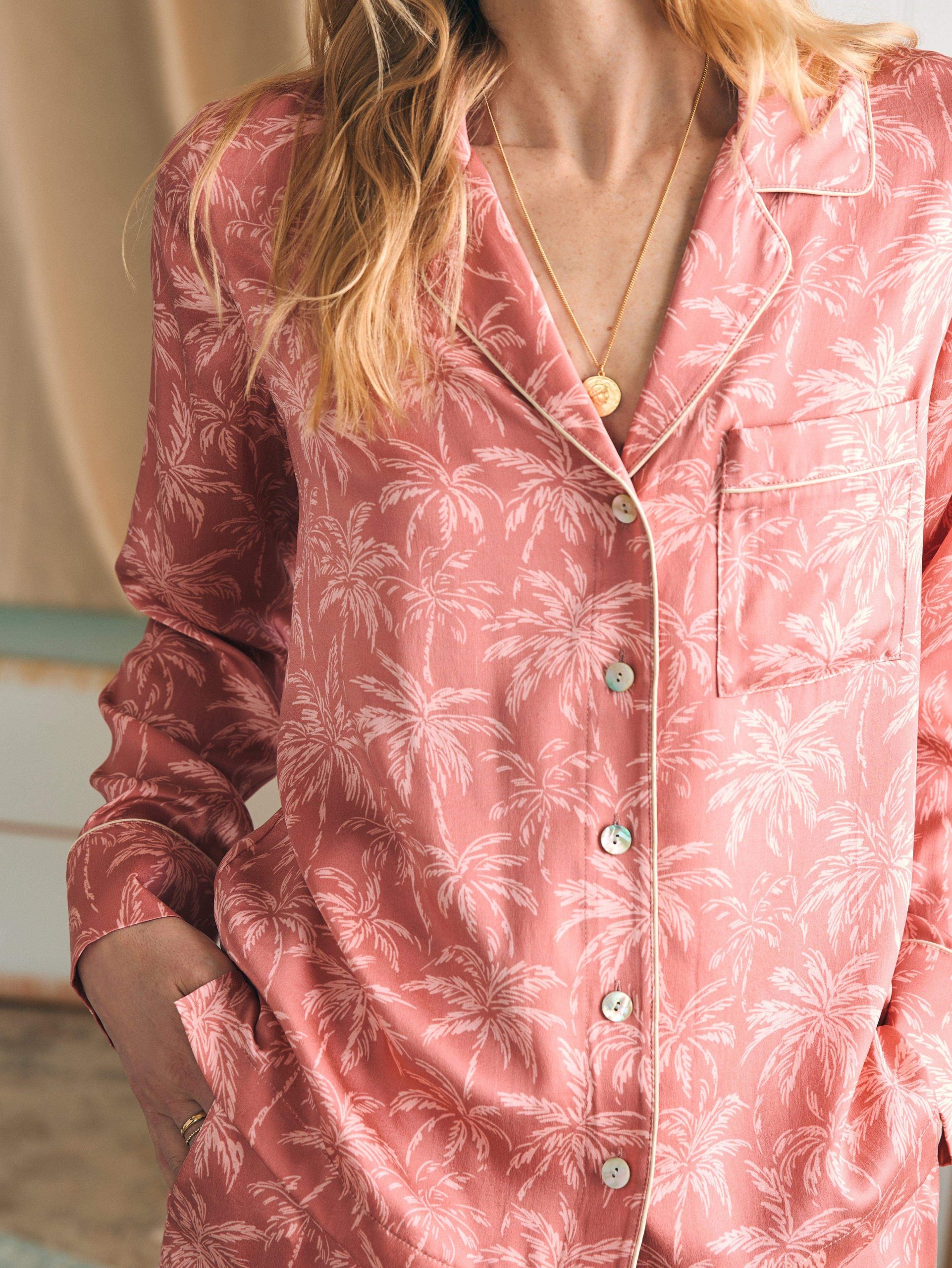 Silk done the Faherty way is all about embracing the softness and inherent luxury of this ancient fiber and cutting it in silhouettes that have an easygoing, lived-in charm. See our long-sleeved pajama set finished in a tumbled, matte finish silk for luxuriously laid-back lounging and cool, cozy nights.