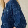 - Detail: Shirring around entire neckline. Elastic at sleeve cuff with slight blouson.