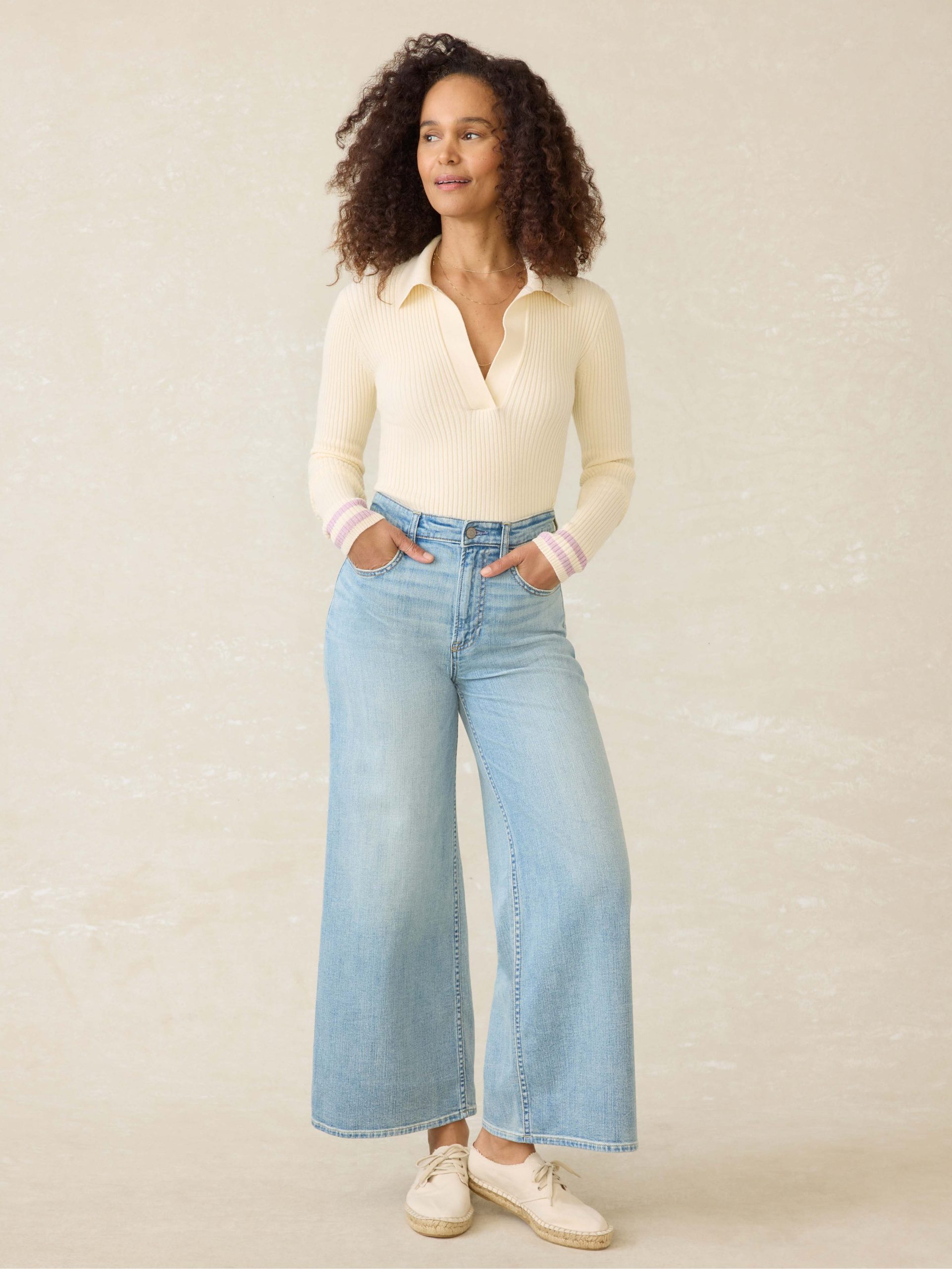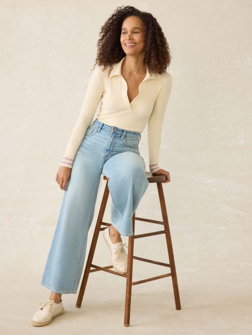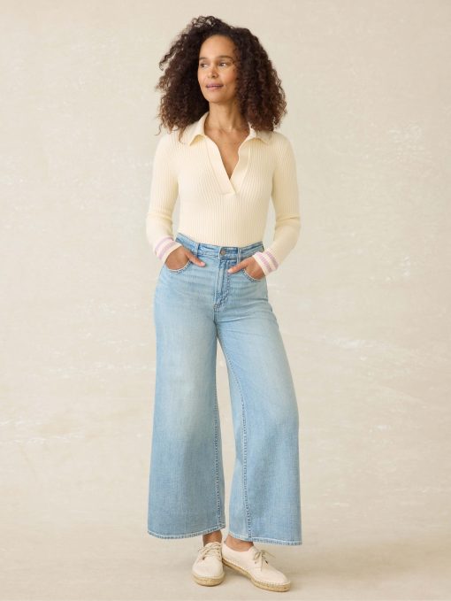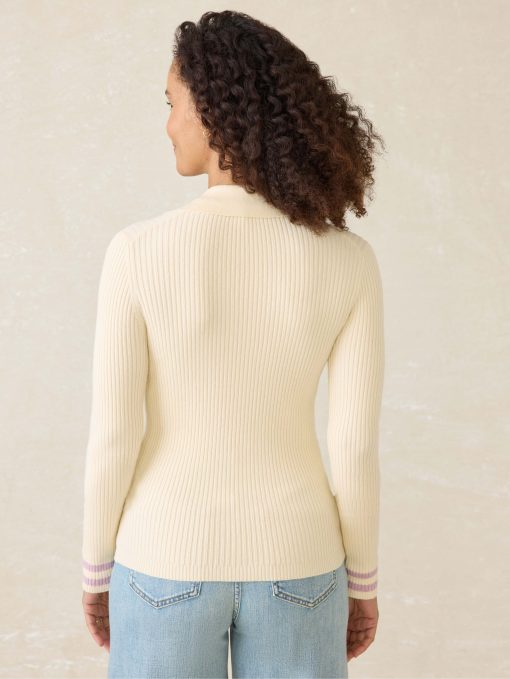 Faherty Women’s Stretch Cotton Cashmere Rib Polo – Cream Retro Stripe | Cream Retro Stripe