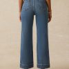 - Detail: Ankle-length indigo stretch terry. Slim wide-leg pants with patched front and back pockets. Regular stretch.