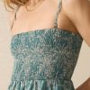 - Detail: Smocked bodice with encased elastic at top edge. Removable straps.