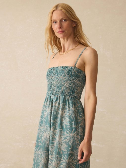 Our tropical midi dress is crafted from airy, textured linen that’s cool, breathable, and full of laid-back charm. The smocked bodice hugs comfortably with encased elastic at the top, while removable straps let you switch to sunkissed shoulders in a snap. Just add sandals and a salty breeze.