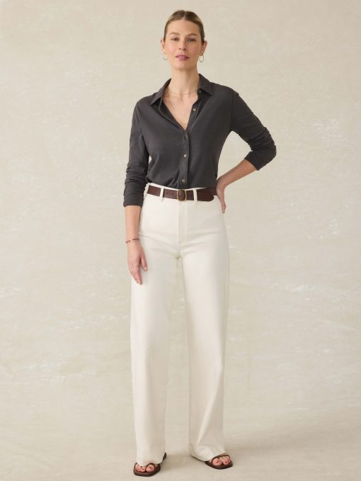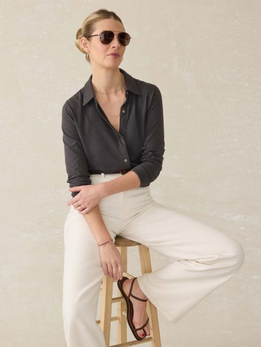 Borrowed from the boys, this icon is truly one of a kind — it looks like a button-up, but wears like a soft tee. Unique to Faherty, it has been designed and tailored for refinement, while still feeling like a mid-weight organic slub cotton T-shirt; it’s season-spanning and pairs with everything.