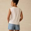 - Detail: Crewneck sleeveless tank with rib trim detail at neckline.