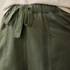 - Detail: Encased elastic waistband with cotton tape at center front tie. Patch pockets at front.