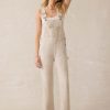 - Detail: Twill linen overall with adjustable straps. Bib pocket at front, patch pockets and painter pocket at back