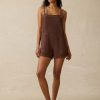 - Detail: Sleeveless twill linen short romper. Front patch pockets