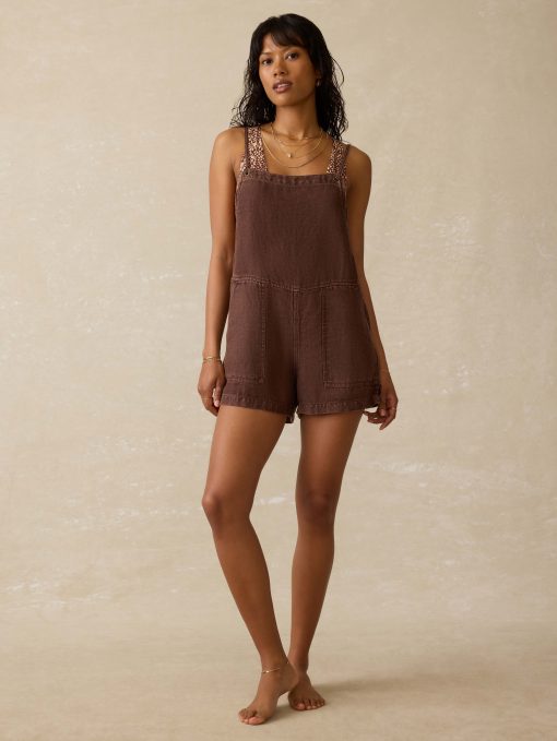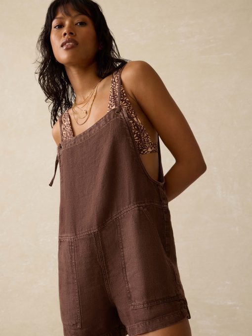 Weekend plans? This romper’s already packed. Made from breezy twill linen, it’s sleeveless, easygoing, and ready for sunshine. The front patch pockets bring a touch of utility (and a place to stash your sunnies), while the clean silhouette keeps things cool without trying too hard. One and done never looked so fun.